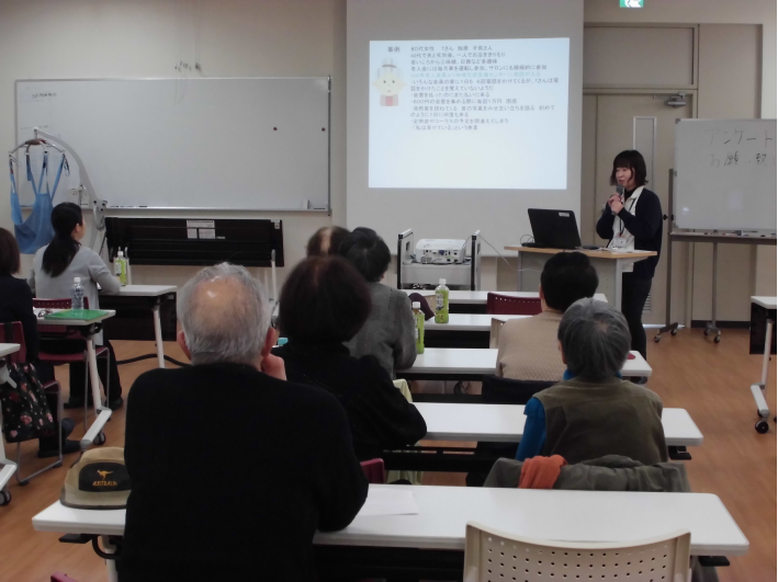 「安心して住み続けられる地域を目指そう-認知症になってもその人らしい生活を守りたい―」を、2020年2月22日(土)に豊橋創造大学で開催しました。第一部は「認知症を知って接し方を工夫 支援の倫理」、第二部は地域包括支援センターの保健師による「実際の事例から接し方を考える」でした。事例の紹介も入れながら、地域の方々と学ぶ機会となりました。わかりやすかったとの意見も多く、研修会を地域で開催することの必要性を感じます。