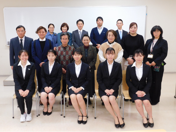 発表会では、4週間の介護実習を終えた5人の学生が、介護の現場での体験によって学んだ介護の在り方と実習内容の分析・評価などをまとめて発表。実習施設関係者と教職員ら約25人が出席し、学生たちの発表ごとに、それぞれの実習指導者と担当講師が講評しました。
