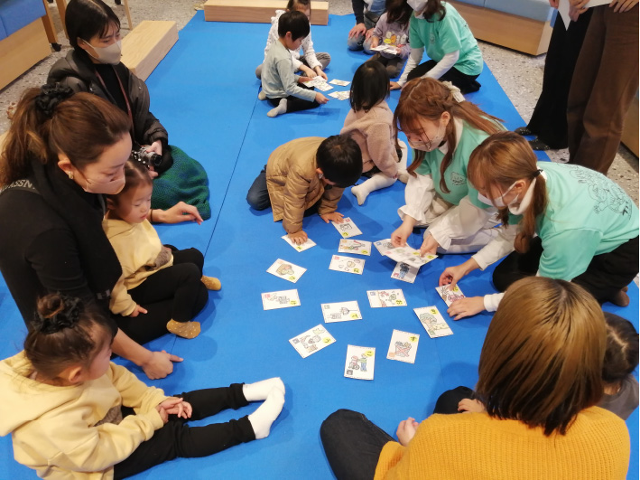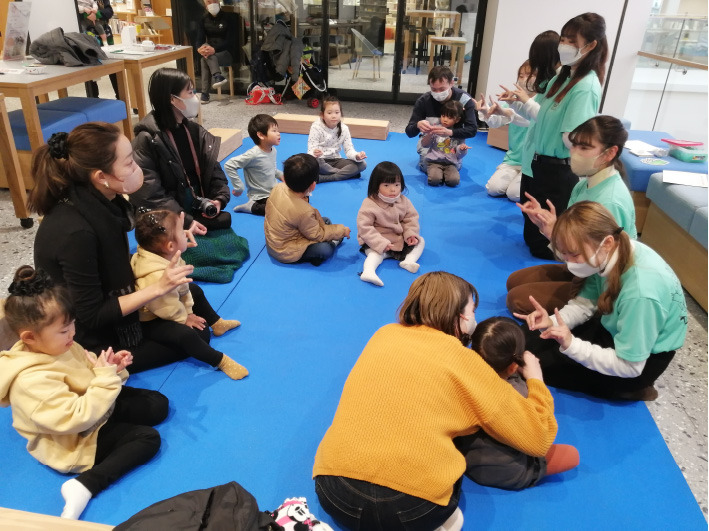 今回参加してくださった親子の皆様は、私たちの活動に対してとても楽しそうに、そして真剣に向き合ってくださいました。そのお陰で、私たちが伝えたかったことをしっかりと受け止めて下さり、お子様たちの年齢の幅もありましたが、子ども同士が自然とお互いを気遣う思いやりや、年上に憧れる姿、また保護者の方同士の関りなど、私たちにとって本当に貴重な学びをさせていただくことができました。さらに、保育者の存在も理解してくださるお言葉や感謝の気持ちなどもいただき、保育者としての仕事の必要性に意欲を持って取り組んでいきたいと思いました。参加してくださった親子の方々、本当にありがとうございました!! そして、すばらしい環境を提供してくださいました「まちなか図書館」様に心より御礼申し上げます。