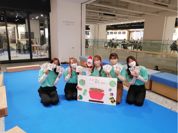 幼児教育・保育科2年生「We can “SOZO”-子どもにもわかる遊びを通して学ぶSDGsサークル(ちばりこプロジェクト)-」が、12月17日土曜日に「まちなか図書館」で、保育×豊橋×SDG’sを掛け合わせたSDキッズイベントを開催しました。これは、豊橋市「わかば補助金」で採択された取り組み事業です。