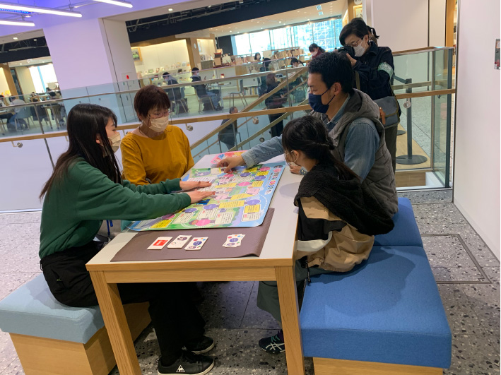 キャリアプランニング科2年瀧崎ゼミの団体「SD嬢s」が2月18日(土)にemキャンパスで「体験型豊橋SDGs!すごろく」のイベントを行いました。すごろくのスタートはまちなか図書館、途中で2階の豊橋国際交流協会によって外国の方とのアクティブカードのミッションがあり、5階のemキャンパススタジオで続きを行い、最後にまちなか図書館でゴール!という自分自身が動いてすごろくを行うという体験型のイベントです。