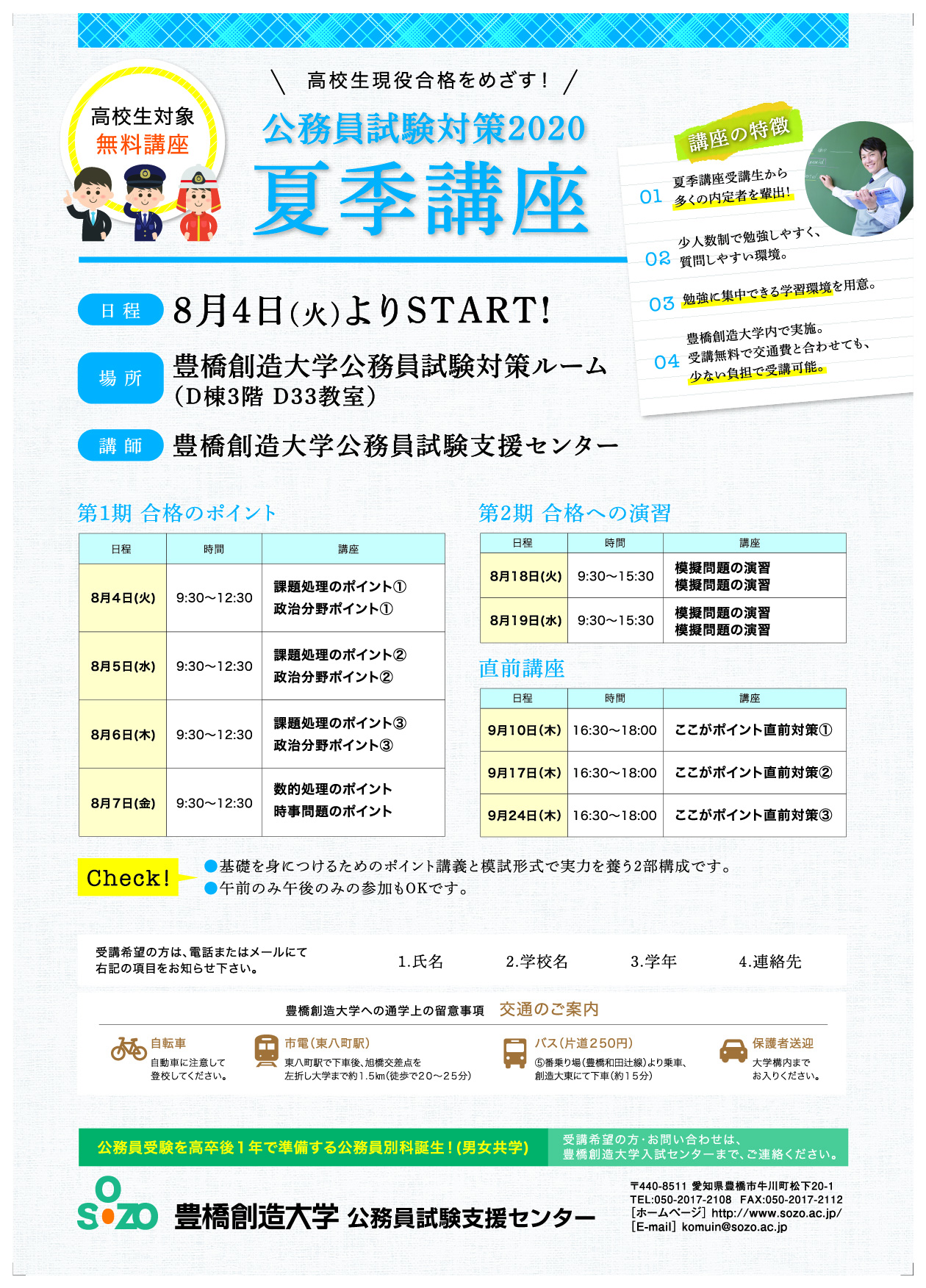 毎年恒例になっております高校生のための公務員試験対策講座・夏季講習会の日程をお知らせいたします。夏季講習会も遠隔授業でも参加可能です(遠隔授業のみ実施です)。ぜひ、ご活用ください!