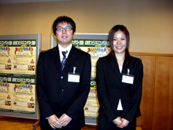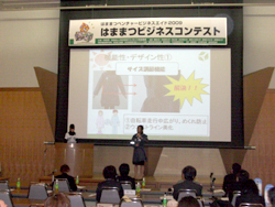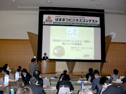 12月11日(金)アクトシティ浜松にて開催された「はままつビジネスコンテスト2009」の学生部門において、情報ビジネス学部3年の山本綾さんと鈴木崇之君が発表を行いました。